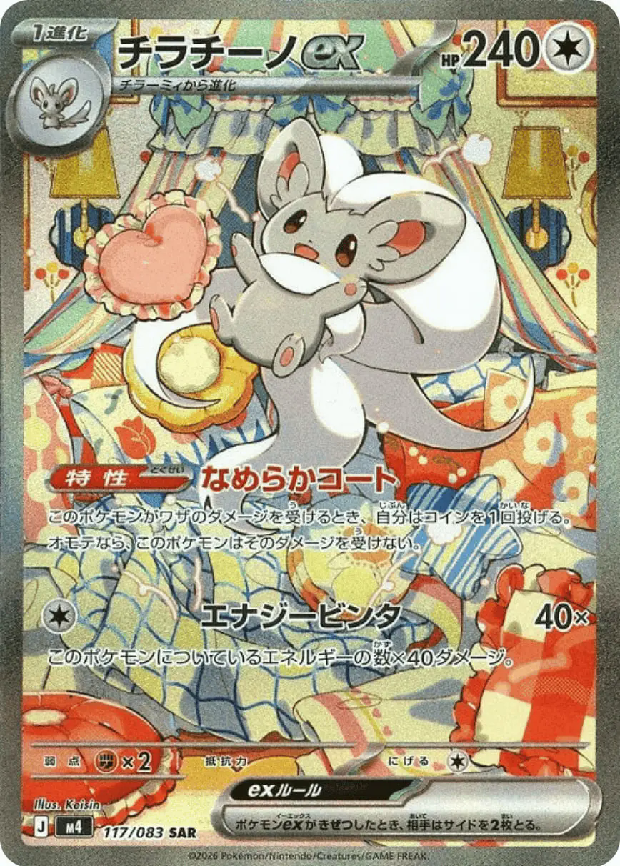チラチーノex [M4 117/093] ニンジャスピナー Twitter Facebook はてブ Pocket LINE コピー 2026.03.13 画像 価格情報 美品キズありPSA10 みんなのポケカ相場GRで見る 価格推移グラフ ショップ販売価格一覧 A PSA10 すべて ショップ名 状態 最安値 リンク カードラッシュの販売価格を見る トレトクの販売価格を見る 遊々亭の販売価格を見る 遊々亭の買取価格を見る 検索 メルカリ ラクマ スニーカーダンク magi